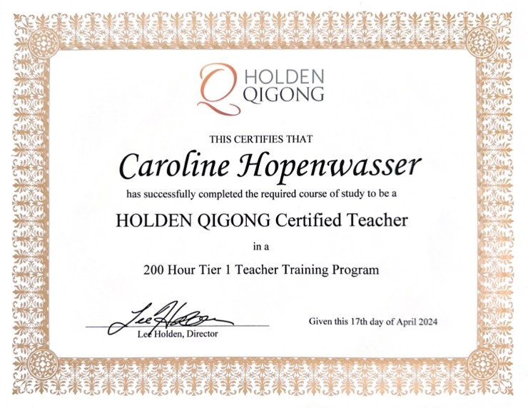 Caroline Hopenwasser is a certified Lee Holden Qigong teacher and Tai Chi Easy Practice Leader. With a professional background spanning over 25 years in education, Caroline seamlessly combines her passion for holistic wellness with her expertise in teaching to create enriching and transformative experiences for her students.